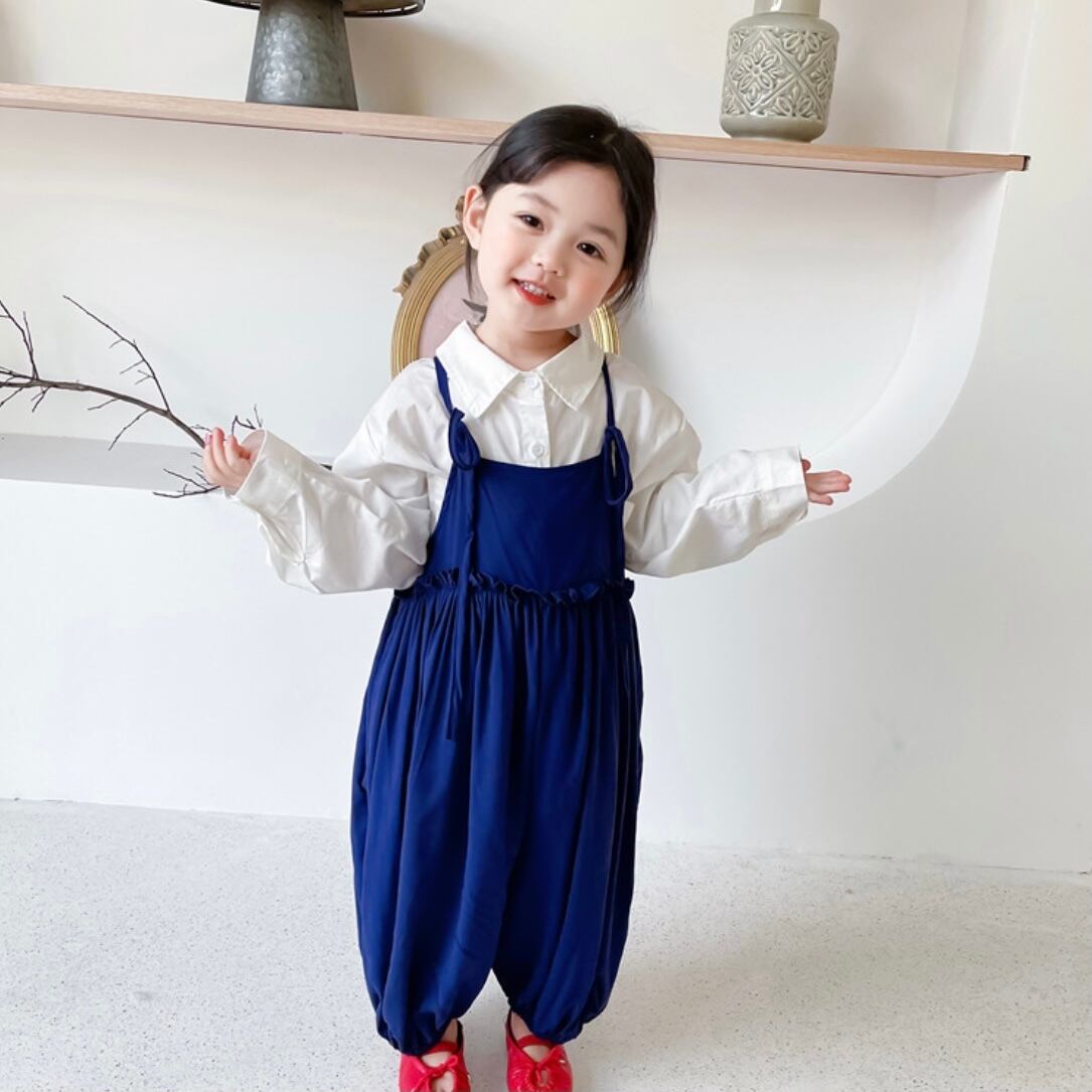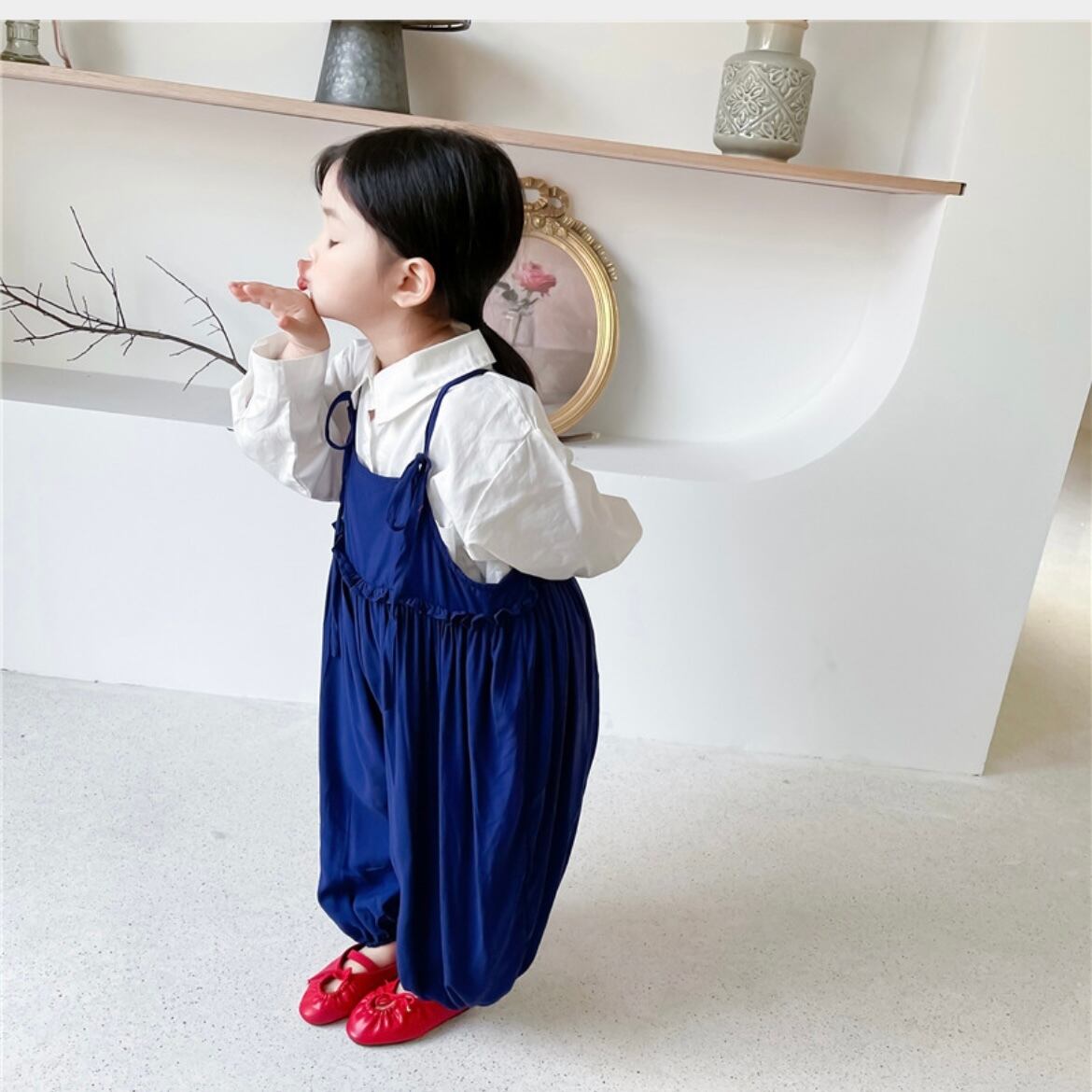 肩ひもは前の両サイドで結んで丈の調節もできるので、長く履いて頂けると思います☺︎